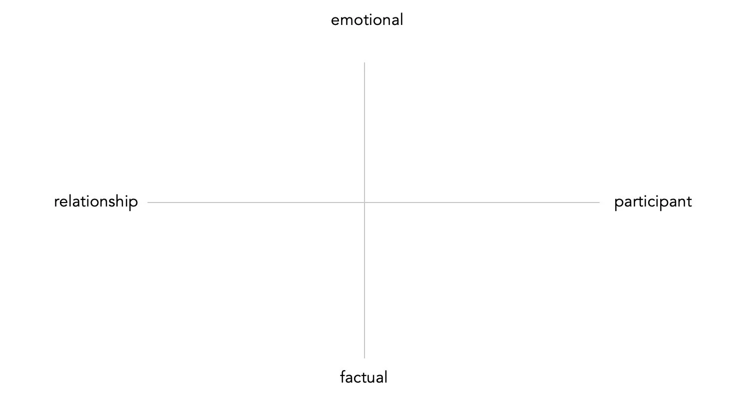 Ergo, suitable topics must have the potential to improve the qualities (1) of the direct report or (2) of the relationship between the leader and a direct report. This is our initial search area. But I think we can go one step further: Because we’re all human, both of these aspects not only have a factual, but also an emotional side. This gives us a search area of four quadrants to populate with suitable topics.