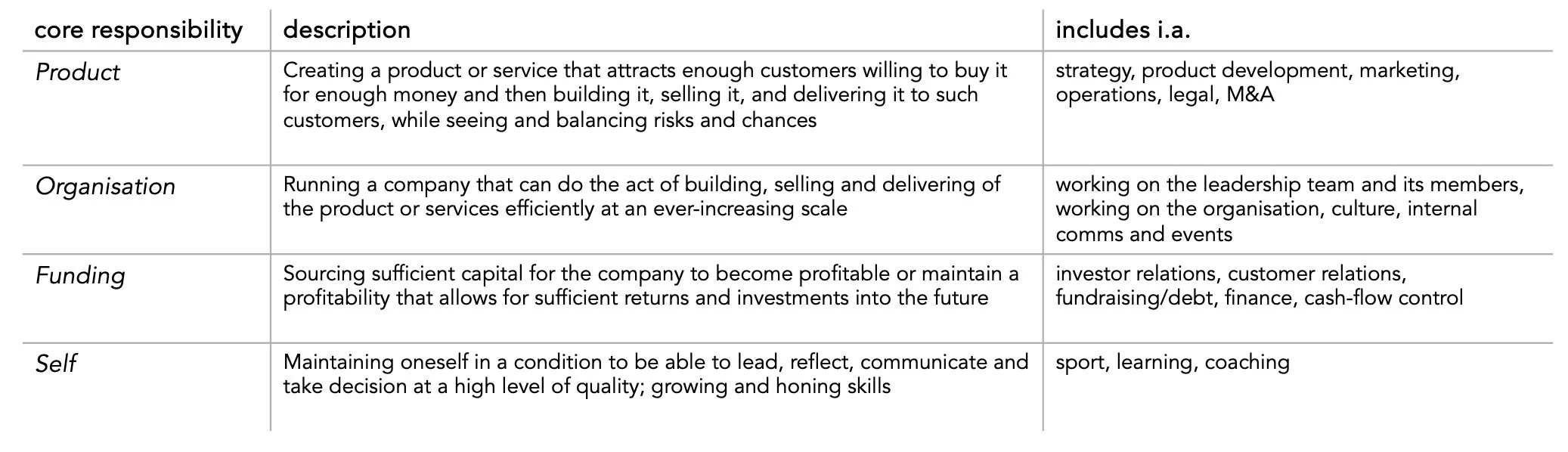 This is no small amount of time, but I think it’s justified by the purpose: Time spent with the leadership team building trust and securing alignment will allow you to scale yourself, and it will make the organisation you are running a lot stronger over time (as established in Part 1).